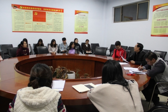 4月4日晚,太阳集团网tyc9728在音乐楼206会议室召开违纪违规学生约谈会,会议由学生科长王永主持,党总支副书记牛爱之及全体辅导员和学生会主要干部参加,会议约谈了上周出现违纪违规行为的13名学生。