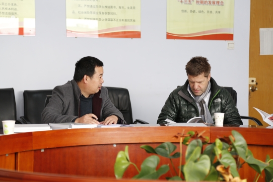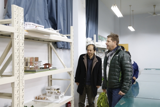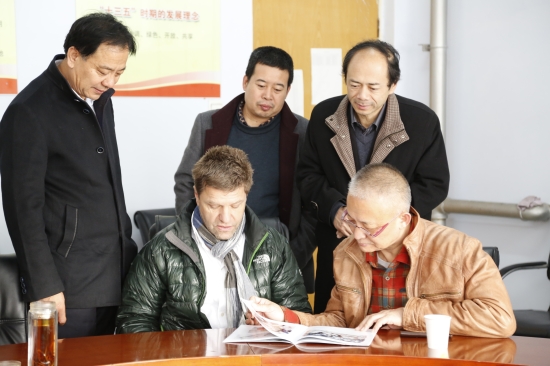 2017年11月16日上午,建筑工程学院左登华院长陪同德国艺术家米勒先生来我院进行艺术考察和交流活动。太阳集团网tyc9728特聘教授孔新苗院长、常务副院长孙兆俊、副院长李建军、综合办公室主任王兆东、吕林博士参加了会谈和交流。双方在交流会上畅谈了对今后双方如何做好合作发展,积极拓展合作空间进行了深入的探讨,现场气氛融洽而热烈。