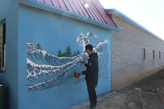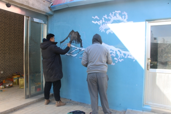 活动之前,同学们结合生态园景物设计了主题鲜明、富有创意、整洁美观的墙绘内容,并利用课余时间进行了多次练习,力争在实际作画中展现最佳效果,为生态园增添光彩。活动中,同学们分组合作,分工明确,有的负责构图,用笔在墙体上勾勒出清晰轮廓;有的负责调色,绿的黄的白的黑的颜料在灵巧的双手间生成七彩斑斓的、符合画面的颜色;有的负责涂色,拿起各式画笔在墙体上细致涂刷。慢慢地,墙面开始生动、鲜活起来了。