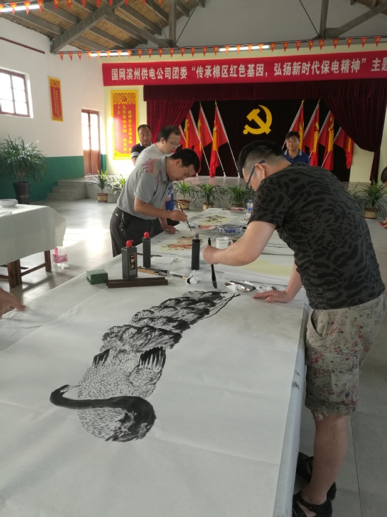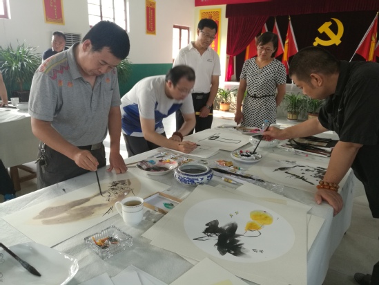 一行8人听取了杨柳雪镇党委书记张洪柱介绍基地建设情况,参观了教育基地,深入了解和学习了周恩来总理的崇高精神、高尚品德和丰功伟绩,太阳集团网tyc9728的老师们现场挥毫作画,助力杨柳雪村美丽乡村建设。