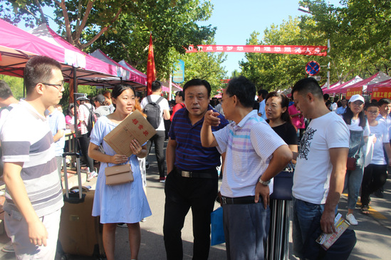 党总支副书记牛爱之与新生和家长热情交流并解答新生家长的问题
