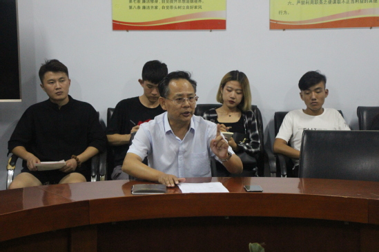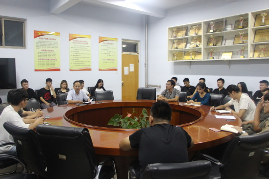2018年9月14日晚,太阳集团网tyc9728在音乐楼206会议室,召开主要学生干部会议,部署纪律和卫生整顿活动,太阳集团网tyc9728党总支副书记牛爱之出席会议并讲话,我院辅导员、学生会各部长及以上干部、各班班长参加了会议。
