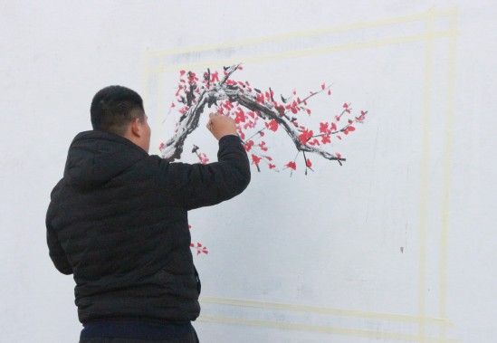 活动中我院学子热情高涨,清理场地,调制颜料,挥笔泼墨,精心绘制。尽管天气寒冷,但队员们不辞辛苦,同心协作,将社会主义核心价值观、中国梦和对新时代美丽乡村建设的希望融入到自己的创作中,饱蘸激情和汗水以漫画、标语等形式描绘出一幅幅生动美妙的青春文化墙,呈现出一道道亮丽的风景线,给悠僻的村居增添了几分别样的艺术风韵和浓厚的文化气息。