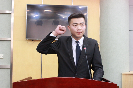 第二届学生会主席王仔尧和各部部长分别就任期内的工作进行了述职演讲,对上一届学生会工作进行系统总结,一年来的工作有辉煌的成就也存在不足,这些都将砥砺第三届学生会成员积极进取,更好的完成他们肩上的使命,不忘初心,坚持梦想,不怕吃苦,奉献自己的青春,全心全意为师生服务。随后,团总支副书记王庆丹宣读了第三届学生会各部任职名单,副科级辅导员张燕飞宣读了第三届学生会干事任职名单。第三届学生会主席周福磊代表新一届学生会表态发言并带领第三届学生会全体成员进行了庄严的宣誓,这是第三届学生会全体成员对太阳集团网tyc9728师生的承诺,是学生会成员身上的责任、担当和誓言。