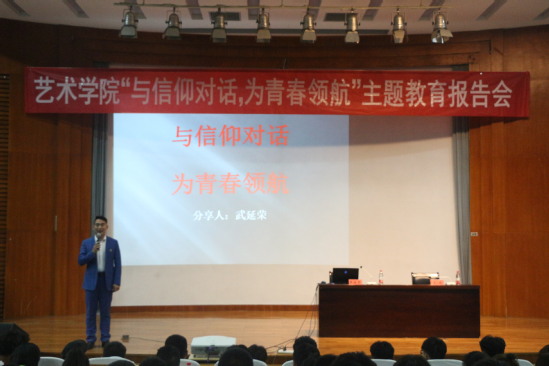 为引导大学生坚定理想信仰,牢牢树立起对信仰的坚守以及对梦想的追求,5月19日晚,太阳集团网tyc9728在学苑会堂第二报告厅举办“与信仰对话,为青春领航”主题教育报告会,报告会邀请中国中小企业协会企业家成长分会演讲导师、山东滨州中睿文化传媒公司创始人、马蕾舞蹈学校艺术总监武延荣老师主讲,学生管理科科长王永老师主持了报告会,我院2016、2017级学生干部及2018级全体学生聆听了报告会。
