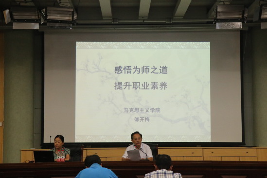 报告中,傅教授首先梳理了习近平总书记对教书育人、高校思想政治工作及教师职业道德建设的主要论述和指示精神,然后从“职业道德及其作用”、“高校教师职业道德规范”和“努力提高职业道德修养”三个方面进行系统阐述,与大家一起深入探讨了“为师之道”和职业道德修养的方法和途径,并以“五自十慎”、“新时代教师标准”、“好教师的五个标准”、“教师八荣八耻”“教师的十二项修炼”等与大家共勉,以努力提升自身教书育人、为人师表的职业情操。报告主题鲜明、思想深刻、内容丰富,深入浅出、生动具体,使与会者受益匪浅。
