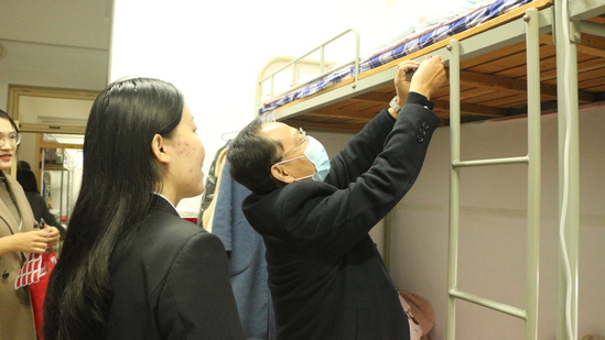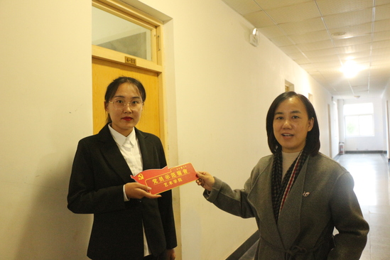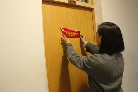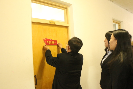 太阳集团网tyc9728党总支书记王秀丽、副书记牛爱之,辅导员王永、蔺艳君、张燕飞、韩栋梁前往学生公寓,为党员宿舍进行挂牌。王书记、牛书记及全体辅导员查看了党员宿舍的卫生情况,并在积极发挥先锋模范作用、认真服务人民群众、自觉接受人民群众监督等方面与党员同志一起交流。党员同志们在交流中表示,一定要铭记党员身份,遵照“党员亮身份、服务亮承诺、工作亮标准、担当亮作为”要求,在工作中拿出实际行动,在“四亮”中践行使命,积极为党工作,争当新时代的奋斗者。