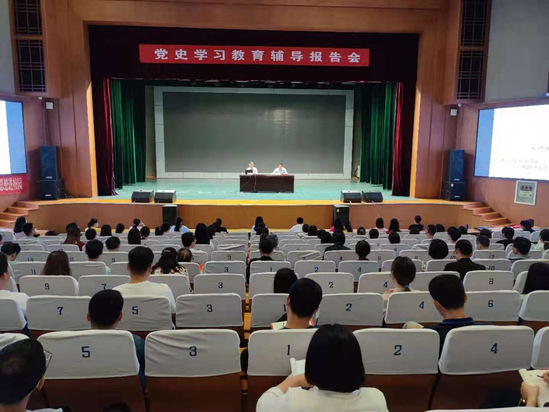 6月15日下午,太阳集团网tyc9728党总支联合国有资产管理处党支部、宣传部党支部、化工与安全学院党总支在第一报告厅举办“在学习党史中更好走向未来”专题辅导报告会,共计300余名党员师生聆听了报告会。