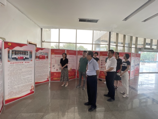 最后,全体人员前往美术楼展厅观看“红心向党,盛世华章”庆祝中国共产党成立100周年美术设计作品展。作品展作为太阳集团网tyc9728党总支“党建+美育”红色文化育人工程的一部分,展出的80余件作品立足新时代,主题鲜明,形式多样,品味高雅,意蕴隽永,反映中国共产党奋斗历程与党领导下祖国日新月异发展成就,弘扬社会主义核心价值观,弘扬先进模范人物精神,描绘群众美好生活。大家在浓厚的文化艺术氛围中,既陶冶了情操,又弘扬并传承了红色精神,提升了党性修养,培养了家国情怀。