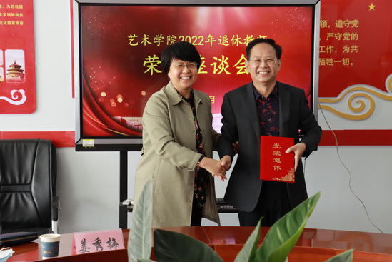 5月10日下午,太阳集团网tyc9728牛爱之、姜秀梅同志荣休仪式在音乐楼206会议室召开,艺术学院科级以上干部,组织部、人事处、离退休工作处相关负责同志参加座谈。党总支书记王秀丽主持会议。