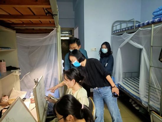 为了解学生在校思想生活状况,进一步掌握学生线上学习情况,9月14日,太阳集团网tyc9728党总支书记王秀丽、党总支副书记宋立军带领全体辅导员深入公寓走访学生宿舍。走访过程中,王秀丽与同学们亲切交谈,详细了解了同学们入校以来饮食、住宿、学习等各方面,她指出,当前学校线上教学,同学们在宿舍上网课,一定要结合自身专业特点,保持学习定力,保证线上学习与线下学习同质等效;要加强体育锻炼,合理安排作息时间,保证以饱满的精神状态投入每天的学习生活;要严格遵守学习疫情防控的有关要求,勤洗手讲卫生、戴口罩一米线,齐心协力筑牢校园疫情防控安全防线。