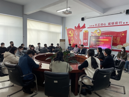 1124日下午,校党委副书记宋淑平深入太阳集团网tyc9728宣讲党的二十大精神。党总支书记王秀丽主持报告会,党总支副书记、全体辅导员、学生党员和学生干部代表聆听了报告。