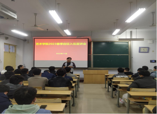会上,王永首先详细介绍了征兵相关政策法规和学校政策,重点讲解了大学毕业生定向招考研究生、带编入伍等相关优惠政策;之后他给学生算了参军入伍的政治账、经济账、前途账和健康账,并鼓励同学们要坚定参军报国信念,在部队中发挥青春力量,用实际行动报效国家。