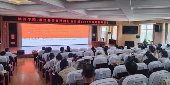 主题教育开展以来,为贯彻中共中央办公厅、国务院办公厅《关于全面加强和改进新时代学校美育工作的意见》精神,落实《山东省教育厅关于试点实施美育浸润行动计划的通知》要求,进一步推动新时代学校美育的改革发展工作,提高美育教师专业水平,滨州学院持续开展“滨州学院·惠民县美育浸润行动计划”,7月12日-14日在惠民县实验中学举办暑期中小学美育教师集中理论研修系列活动。