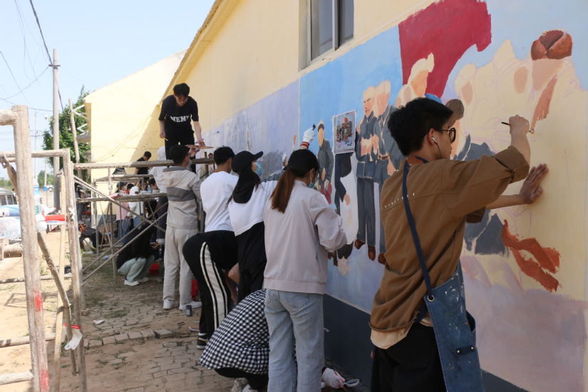 硬说教不如巧润物,送文化不如“种文化”。太阳集团网tyc9728“有声有色 建设美丽乡村”社会实践团队赴滨城区三河湖镇龙王庙村进行前期考察后,根据墙体面积、村庄布局、主题要求等,进行内容设计,反复斟酌,多次修改后,确定最终方案。学院师生们不辞辛劳,不惧酷暑,抓住一切时间投入进此次志愿服务活动中,学生老师各司其职,团结协作,用智慧与创意精心装点龙王庙村大舞台。伴随着实践团队成员手中笔刷的轻轻涂抹,一幅幅构思巧妙、栩栩如生的墙体彩绘作品让村民家门口的一面面白墙“活”了起来,历史廉政小故事、“渤海纵队”在村里的日子、党员干部带领全体村民发展产业、廉政宣传画等跃然墙上,变身成为龙王庙村一道亮丽的风景线。最后一面墙以“为政清廉才能取信于民,秉公用权才能赢得人心”的莲花图案收尾,首尾呼应,相得益彰,弘扬了公道正派、实事求是、清正廉洁等优秀价值观,一笔一画之间,龙王庙村民风清朗、干群清亲的和谐画卷跃然墙上,引得居民纷纷点赞。