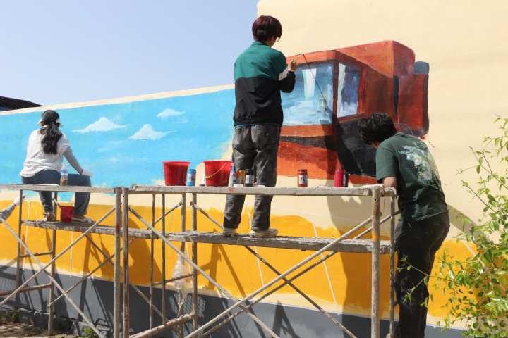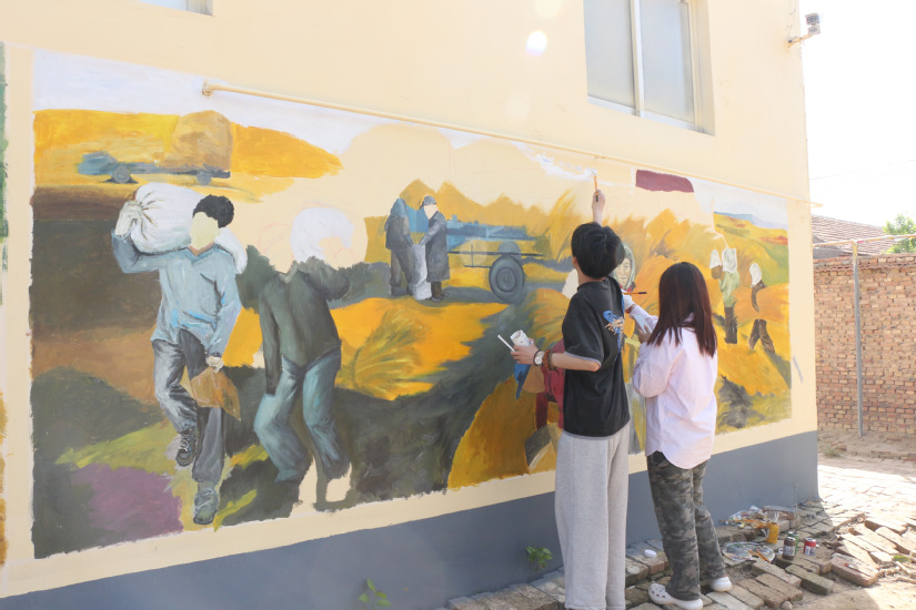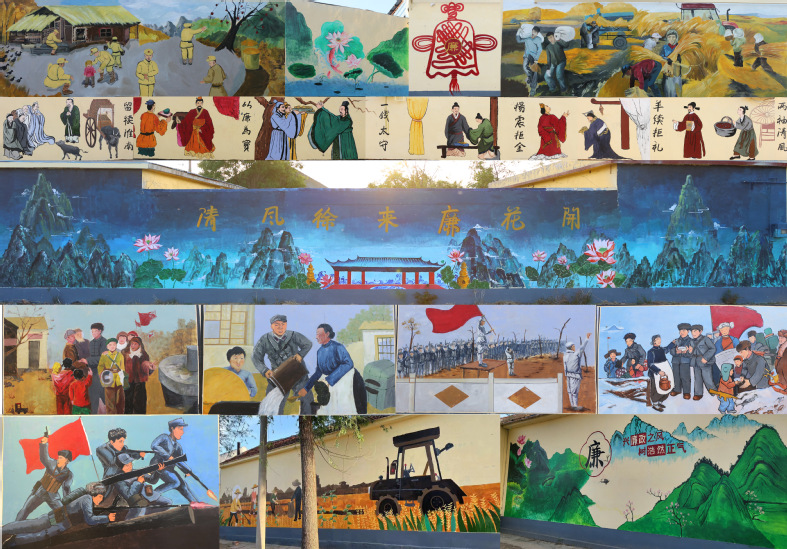 硬说教不如巧润物,送文化不如“种文化”。太阳集团网tyc9728“有声有色 建设美丽乡村”社会实践团队赴滨城区三河湖镇龙王庙村进行前期考察后,根据墙体面积、村庄布局、主题要求等,进行内容设计,反复斟酌,多次修改后,确定最终方案。学院师生们不辞辛劳,不惧酷暑,抓住一切时间投入进此次志愿服务活动中,学生老师各司其职,团结协作,用智慧与创意精心装点龙王庙村大舞台。伴随着实践团队成员手中笔刷的轻轻涂抹,一幅幅构思巧妙、栩栩如生的墙体彩绘作品让村民家门口的一面面白墙“活”了起来,历史廉政小故事、“渤海纵队”在村里的日子、党员干部带领全体村民发展产业、廉政宣传画等跃然墙上,变身成为龙王庙村一道亮丽的风景线。最后一面墙以“为政清廉才能取信于民,秉公用权才能赢得人心”的莲花图案收尾,首尾呼应,相得益彰,弘扬了公道正派、实事求是、清正廉洁等优秀价值观,一笔一画之间,龙王庙村民风清朗、干群清亲的和谐画卷跃然墙上,引得居民纷纷点赞。