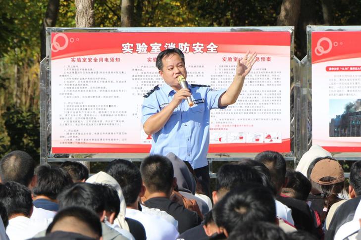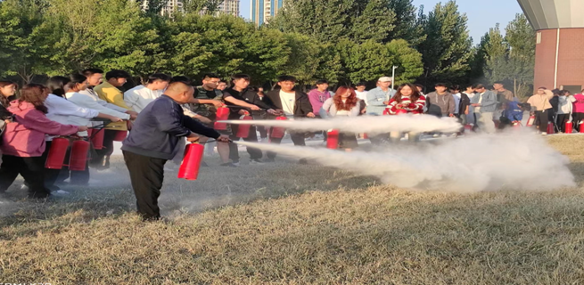 培训现场,杨玉杰老师围绕高校发生火灾安全事故的典型案例,向学生介绍了校园火灾的严重危害,并通报了近几年校园火灾造成的人员伤亡情况,通过典型案例和真实的数据让同学们认识到定期参加消防安全培训的重要意义。培训会最后,同学们在保卫处老师的指导下学习了灭火器材的使用方法,并进行了灭火实战演练。