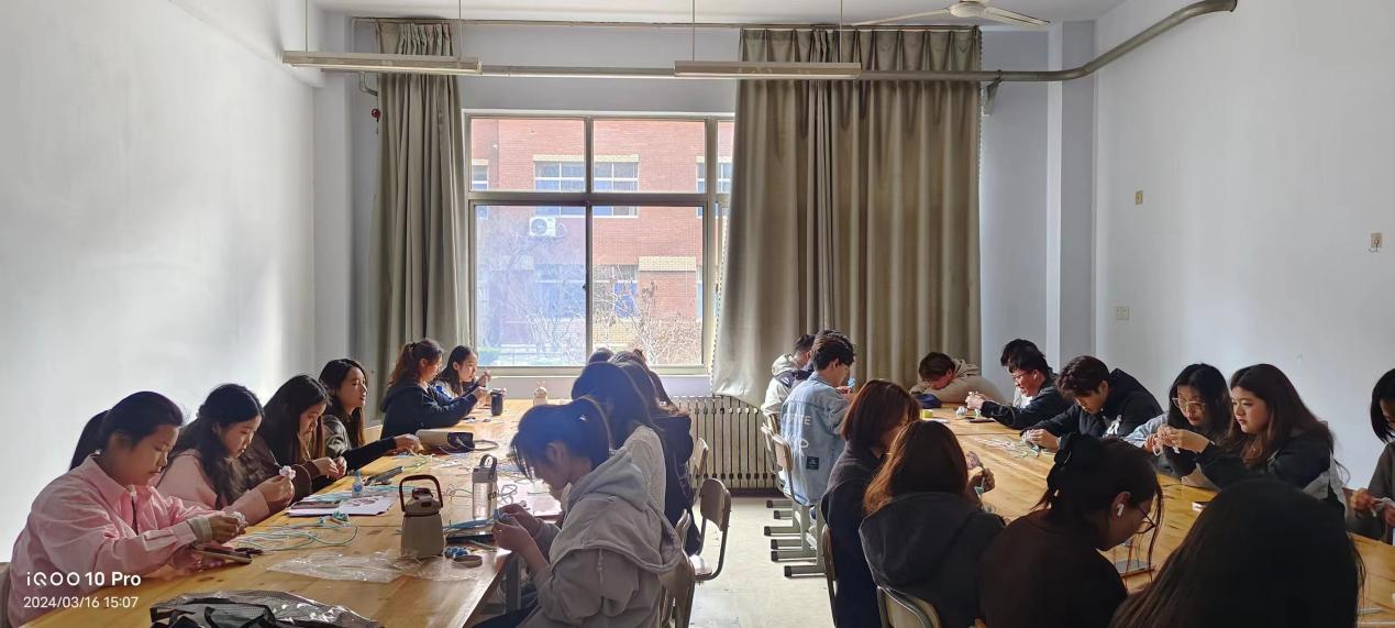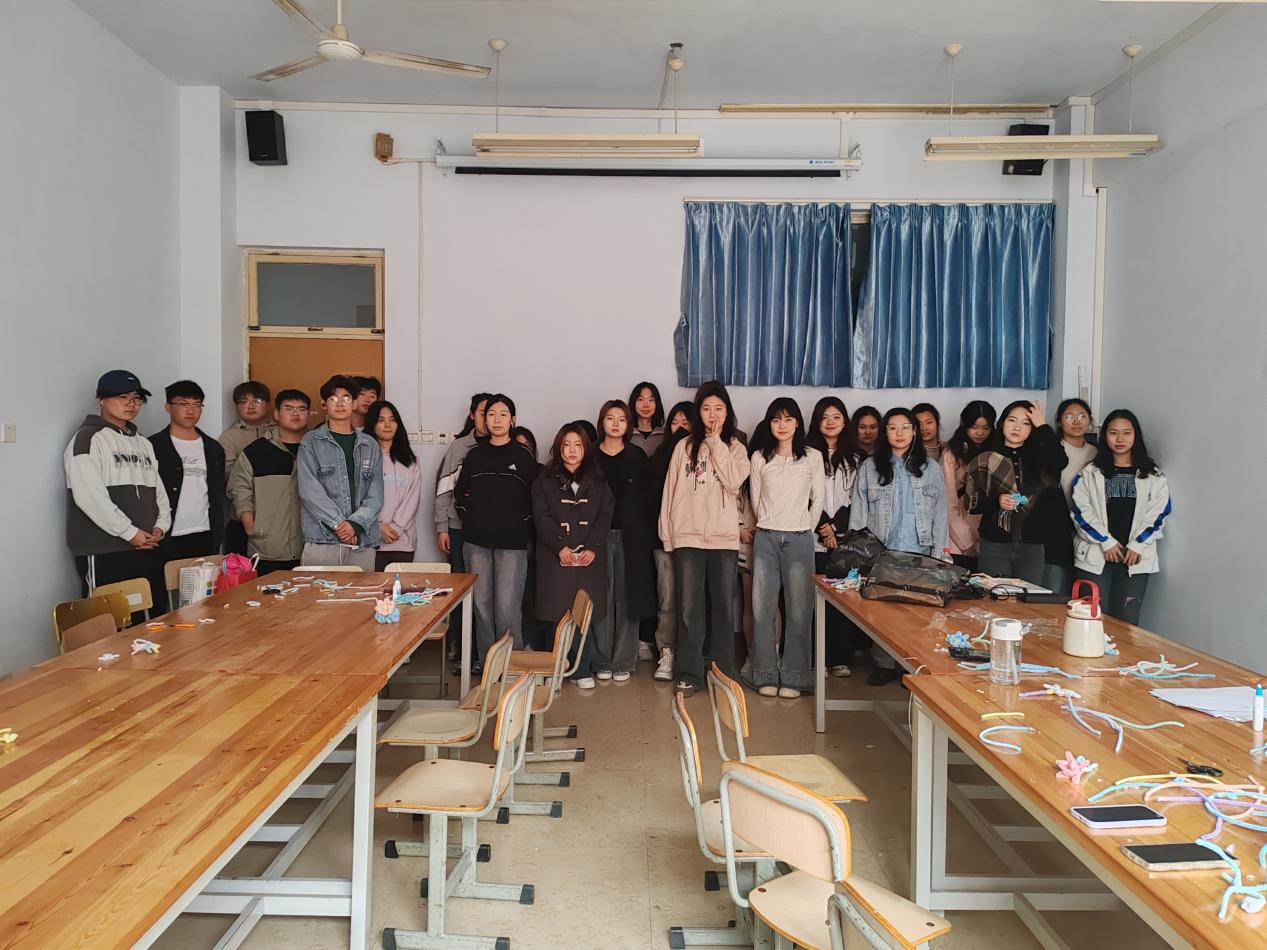 活动中,负责人简要介绍了艺术疗愈的概念和扭扭棒手工作品的特点,通过视频讲解教授扭扭棒制作步骤,让同学们了解并掌握了制作过程和技巧。活动现场欢声笑语,洋溢着青春的气息,同学们尽情发挥自己的想象力,用自己的动手能力、创作潜力和审美能力获得积极的情感体验,促进心灵成长。