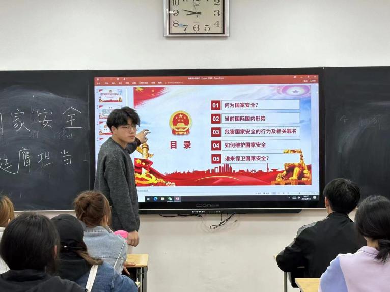 本活动以团支部为单位,各团支部书记在班级内积极开展了主题宣讲,从什么是国家安全、国家安全的重要性、我国为维护国家安全做出的工作和团员青年应当如何维护国家安全等方面进行了阐述;组织观看《传承:红色保密印记》纪录片;开展团支部大讨论,鼓励同学们踊跃分享自身对国家安全的认知与思考;举办了国家安全知识竞赛活动,以充满趣味的方式大幅加深同学们对国家安全知识的理解。