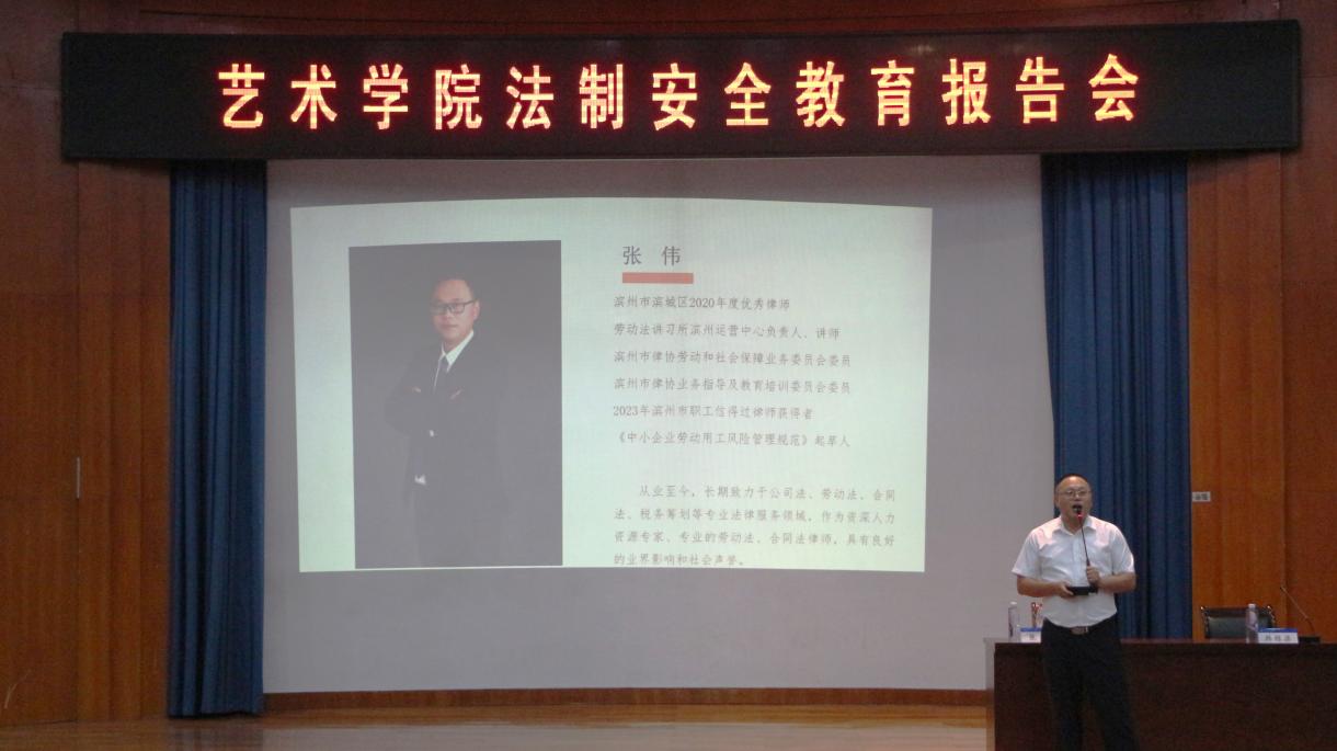 为进一步提高大学生就业相关法律意识,增强大学生依法维权和自我保护能力,提高法治意识,6月2日,太阳集团网tyc9728在明德报告厅召开了法制安全教育报告会。本次报告会主要宣讲人为山东一衡律师事务所律师张伟。