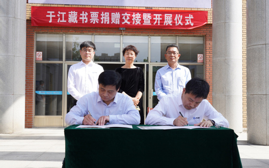 5月16日,于江藏书票捐赠交接暨开展仪式在我校太阳集团网tyc9728展览馆举行。我校党委副书记殷梅英,滨化集团总裁助理、首席行政官、工会主席陈伍,滨化集团实业公司总经理崔朋强出席仪式,我校党委宣传部负责人主持仪式,合作发展处、太阳集团网tyc9728负责人及部分师生代表参加仪式。