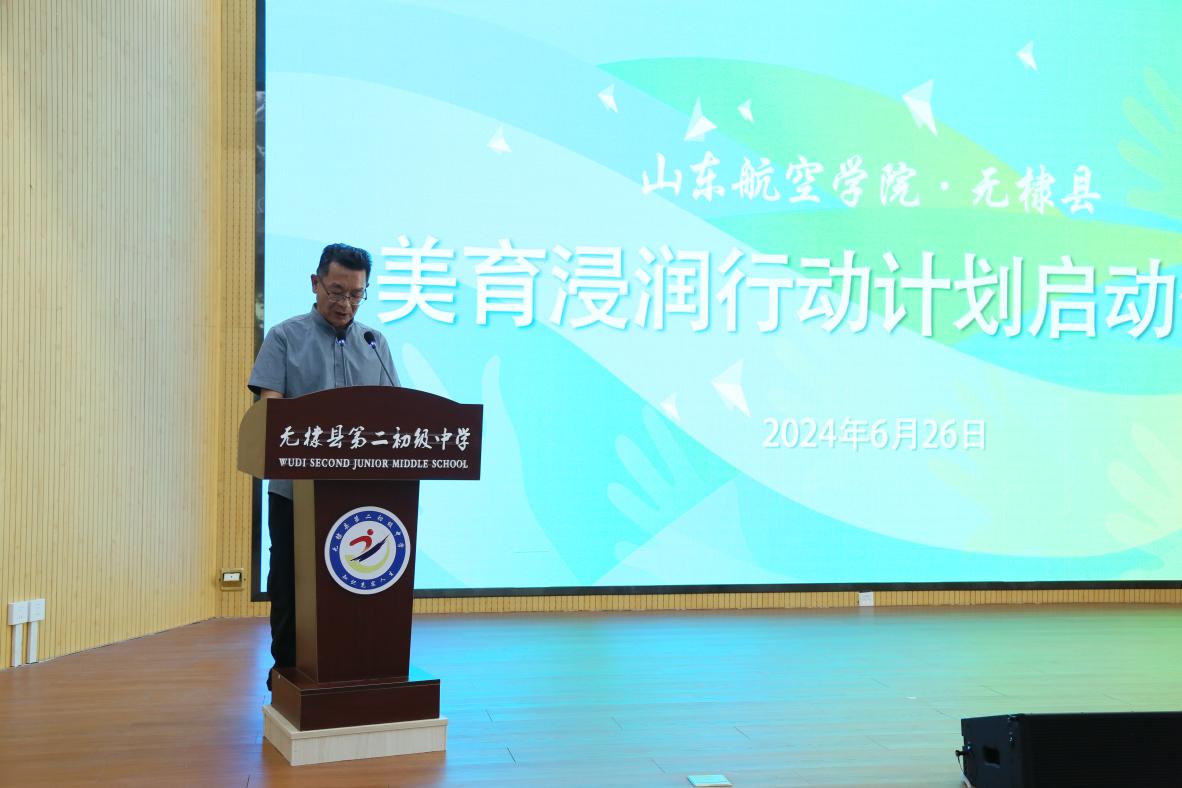 6月26日,太阳成tyc9728集团·无棣县美育浸润行动计划启动仪式在无棣县县第二初级中学报告厅顺利举行。太阳成tyc9728集团党委委员、副校长郭新伟,滨州市教育科学研究院党总支副书记崔方锋,无棣县人大常委会党组副书记、副主任蔡银芳,无棣县政府办公室副主任刘明博,无棣县教育和体育局党组书记、局长郭强,太阳成tyc9728集团教务处处长章健、太阳集团网tyc9728院长李建军等领导出席仪式。太阳集团网tyc9728部分教师、无棣县各中小学、幼儿园有关负责同志及部分美育教师参加活动。