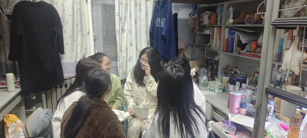 活动中,负责人简要介绍了艺术疗愈的概念以及活动的大致内容。活动过程通过一问一答等巧妙的方式,让同学们思考并处理好室友间的关系,清楚地认识到沟通的重要性,并根据彼此的特点进行调整。在负责人的带领下,同学们积极参与问答,热烈讨论,活动现场洋溢着快乐的氛围。