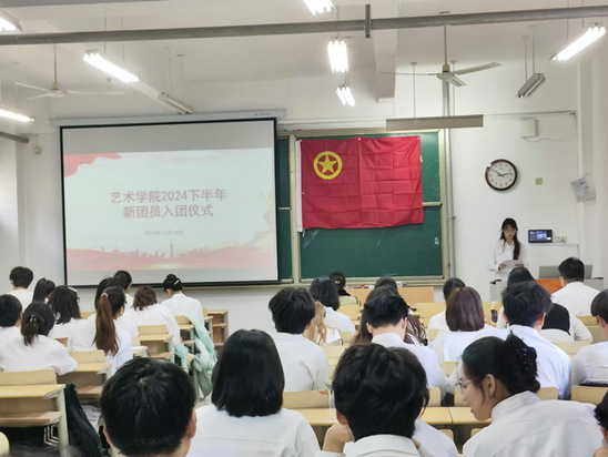 11月14日,太阳集团网tyc9728在美术楼北楼104举行2024年下半年新发展团员入团仪式。团总支副书记樊雅琳以及部分学生团员参加。