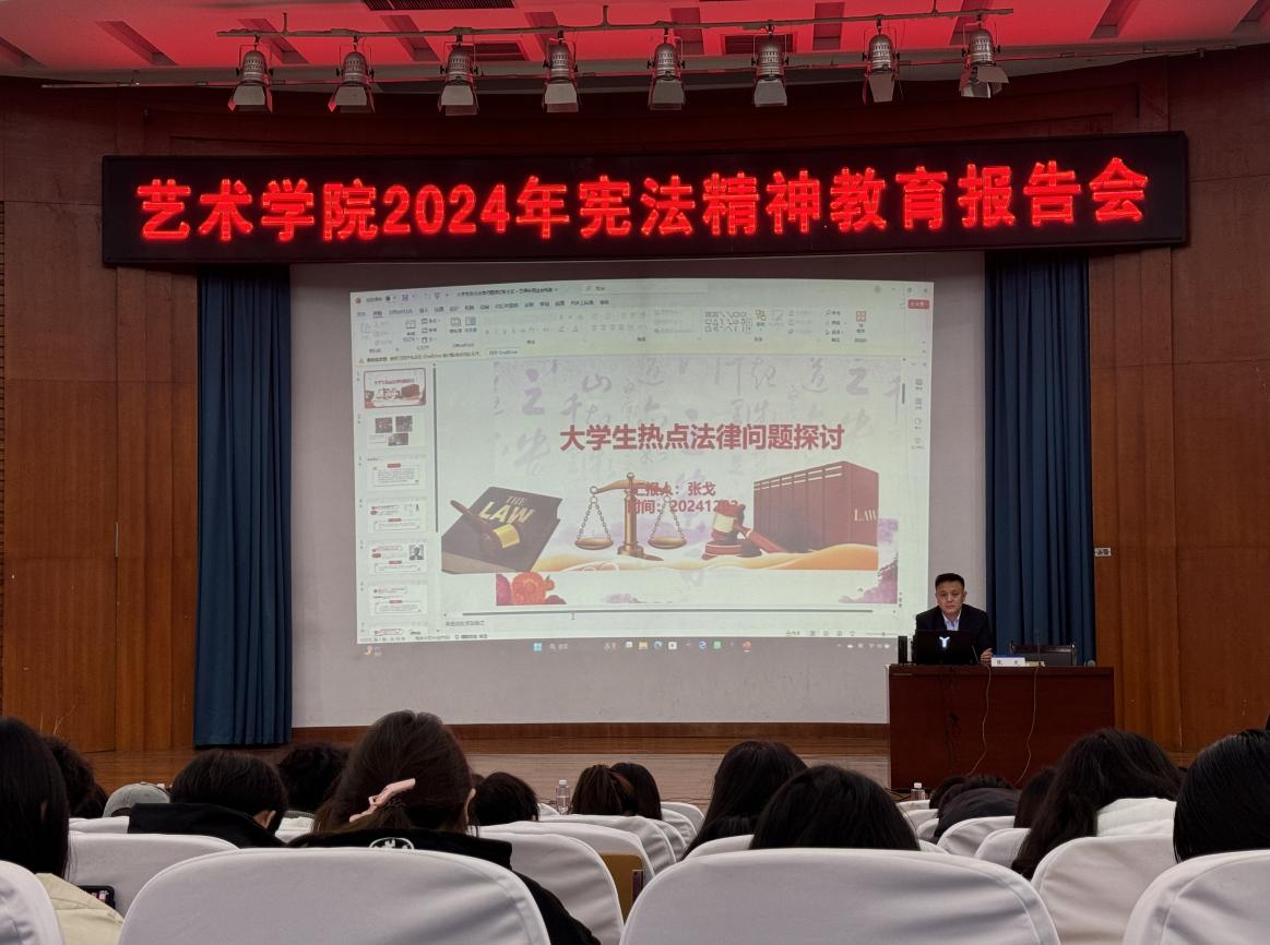 为深入普及宪法知识,弘扬宪法精神,助力法治校园建设,12月3日晚太阳集团网tyc97282024年宪法精神教育报告会在学校明德报告厅举办。本次报告会由山东中捷律师事务所支部书记张戈书记、谭树娟律师主讲,学院党总支副书记秦玉国、2024级全体学生及部分学生干部参加本次报告会,辅导员段兆岢主持。