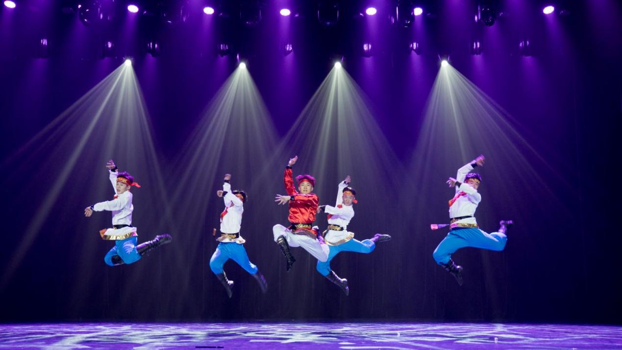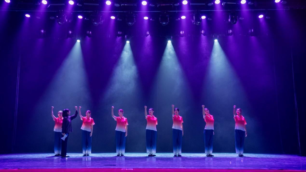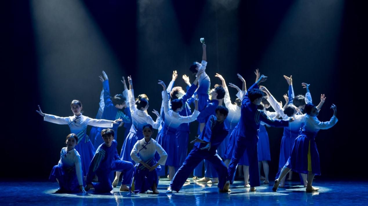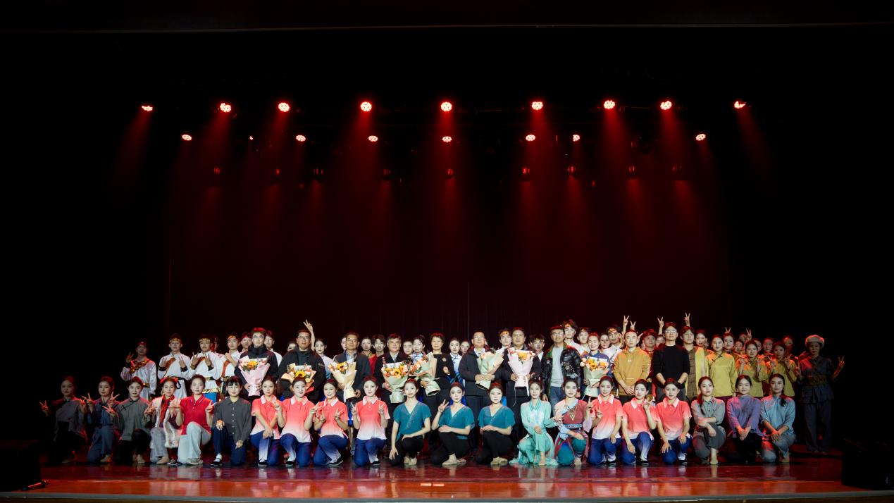 整场演出以“红昀”为主题,分为“红昀初绽”“舞韵传承”“红昀颂歌”“红昀永恒”四个篇章。在课堂精粹部分,观众们领略了中国古典舞的优雅韵味、中国民族民间舞的丰富多彩以及黄河三角洲民间舞的独特风情。这些课堂精粹不仅体现了舞蹈学专业扎实的教学基础,也展示了学生们对舞蹈艺术的深刻理解和精湛技艺。作品展示部分则是整场演出的重头戏。以红色题材为核心,学生们用舞蹈讲述了一段段感人至深的故事。从《东方红》中中华儿女为民族独立和人民解放的英勇奋斗,到《八女投江》中巾帼英雄的英勇无畏;从《茉莉芬芳》中五四爱国青年的激情与热血,到《心中的河》对祖国大好河山的赞颂与梦想传递;再到《奔腾》中中华民族自强不息的精神风貌,以及《我的妈妈叫桂梅》中无私奉献的感人事迹,每一个作品都深深触动着观众的心灵。演出在高潮迭起中缓缓落下帷幕,最后以一曲《唱支山歌给党听》作为华彩集锦,将现场气氛推向了顶点。观众们纷纷起立鼓掌,为这场精彩的演出献上最诚挚的敬意。