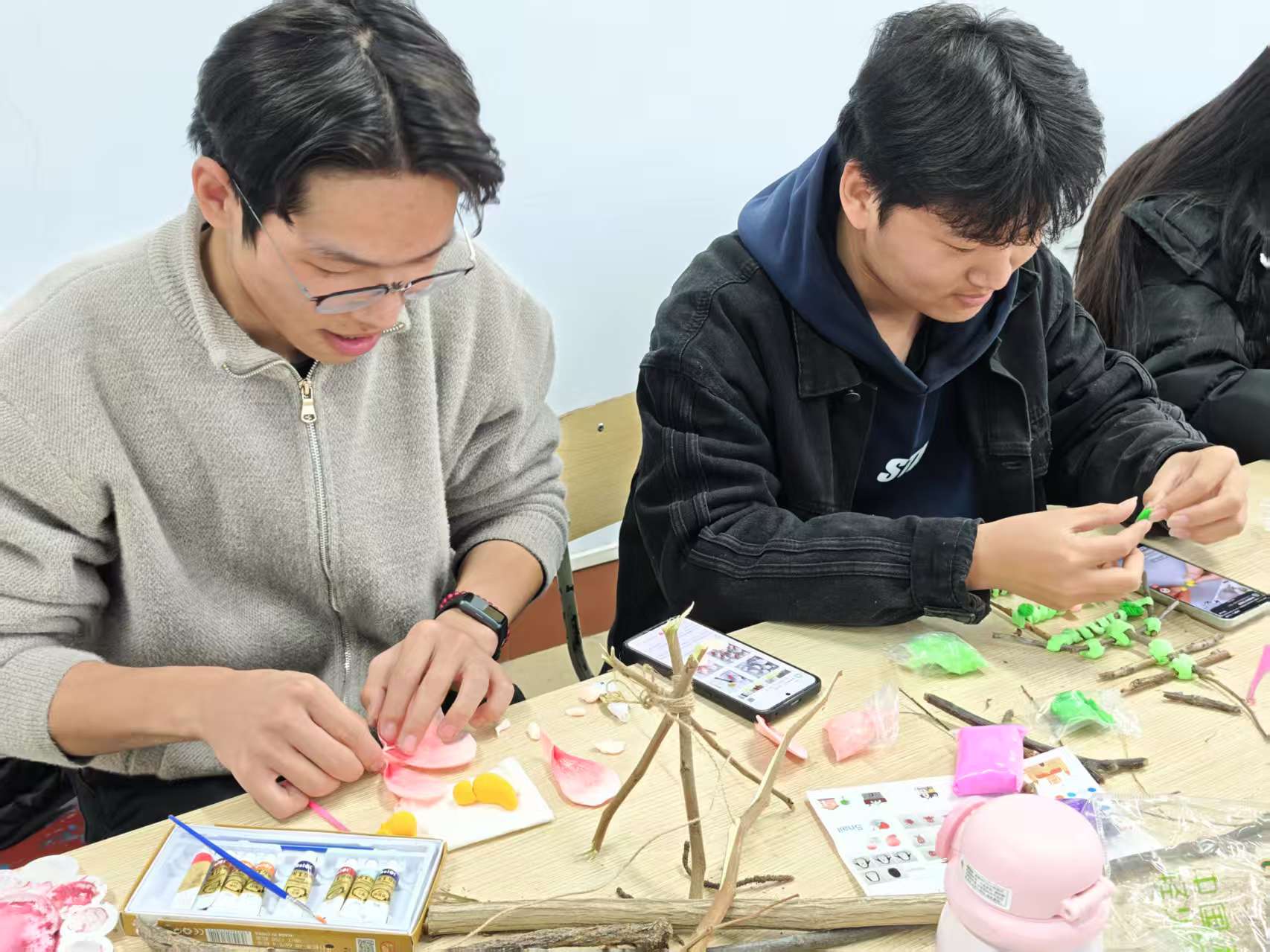活动通过艺术疗愈的方式,让参与者在动手实践中感受创意带来的愉悦与自信。彩泥与树枝的结合不仅激发想象力,更通过触觉体验传递温暖,帮助学生在专注创作中暂时脱离现实压力,重构内心平衡。未来,学院将持续探索多元化的心理健康教育形式,助力学生身心健康发展。