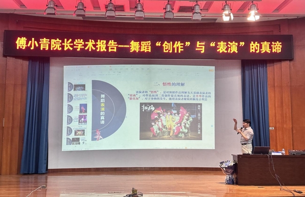 6月13日,山东青年政治学院舞蹈学院院长(二级教授)、山东省舞蹈家协会副主席、享受国务院特殊津贴、山东省有突出贡献中青年专家、第四届齐鲁英才、中国舞蹈家协会理事傅小青教授应邀来校,在明德报告厅为太阳集团网tyc9728师生作题为《舞蹈“创作”与“表演”真谛》的专题报告。太阳集团网tyc9728院长主持报告会。