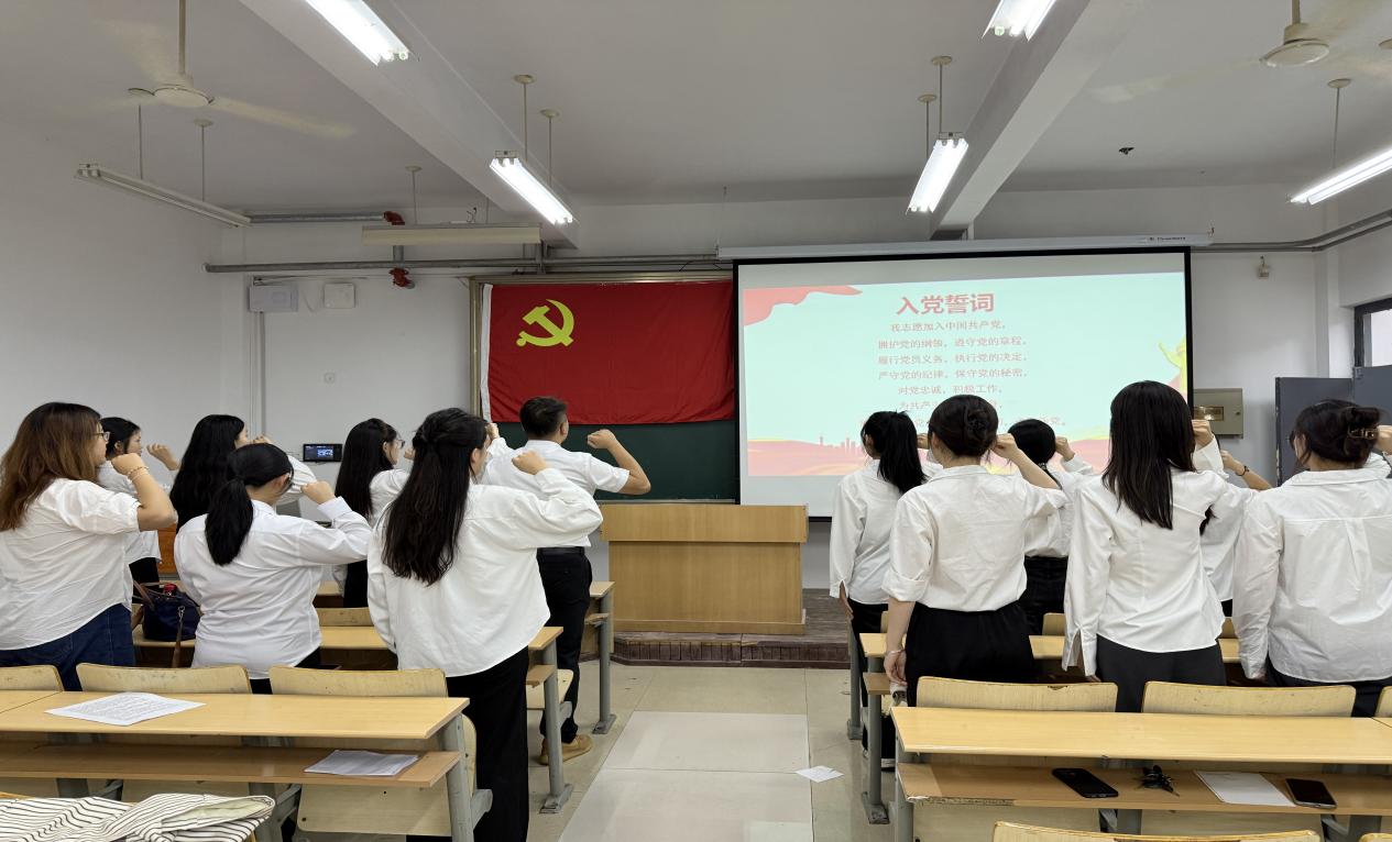 仪式在庄重氛围中开始,全体起立奏唱《国际歌》。随后,主持人宣读新党员名单并为其佩戴党徽,在场人员以掌声祝贺。在领誓人带领下,新党员们面向党旗,举起右拳庄严宣誓,以铿锵有力的誓言表达对党的忠诚与决心。