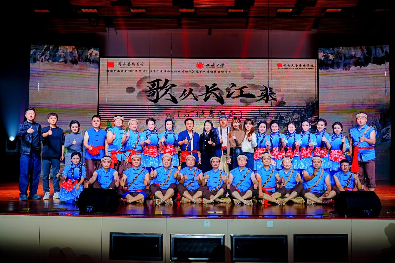 11月15日晚,国家艺术基金2025年度艺术人才培养资助项目“川江号子表演和创作人才培训”结项汇报演出——“歌从长江来”音乐会在西南大学上演。我院王贝老师代表学校,担任该项结项音乐会多首作品的领唱与主演。